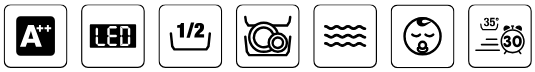 Special options: Half-load on upper tray, Extra drying, Turbo speed+